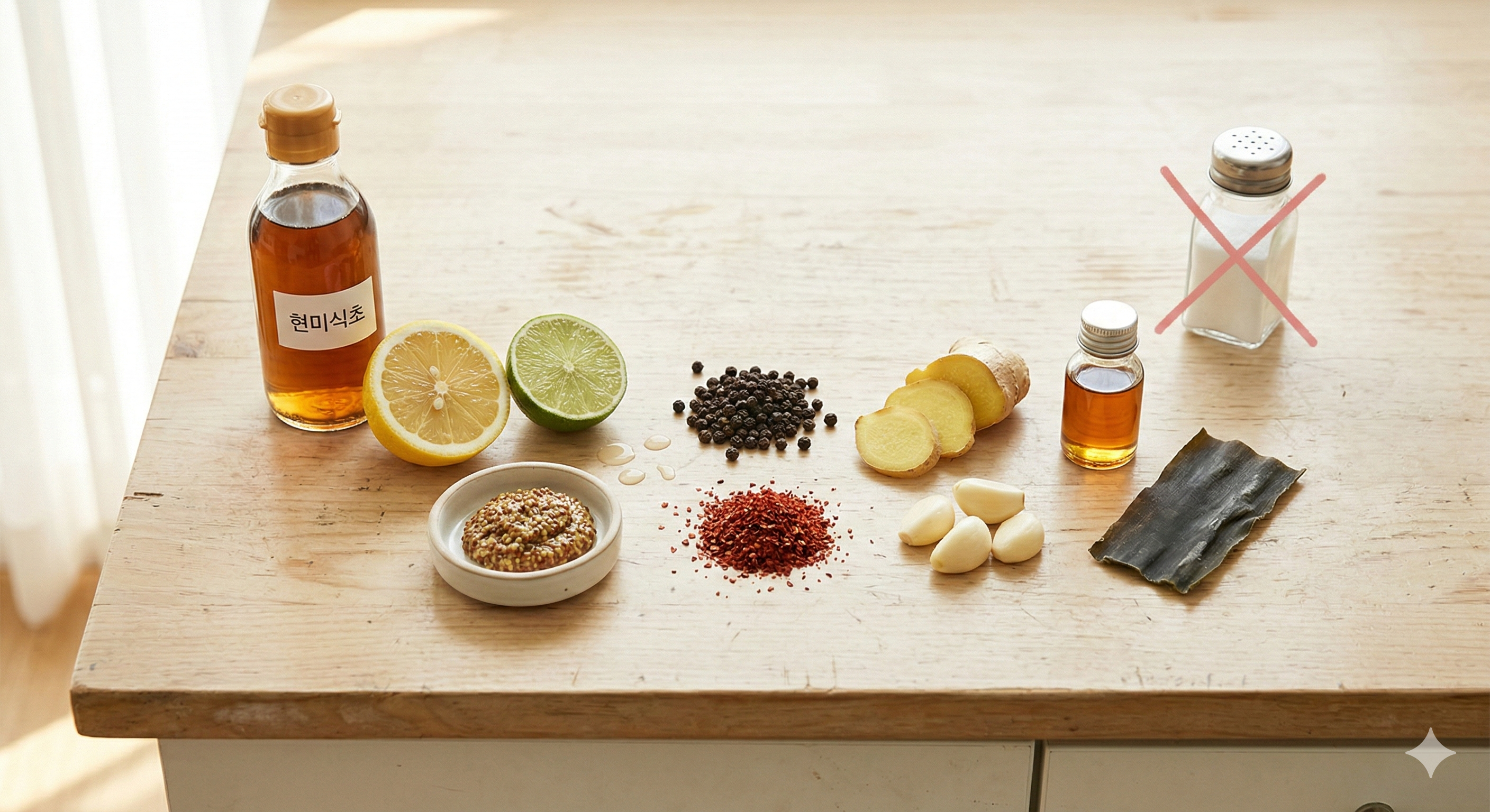 처음부터 완벽하게 바꾸려 하기보다는, 한 끼에서 소금 사용을 줄이고 식초와 레몬즙 한 가지를 더해보는 것부터 시작하시기를 권장드립니다. 다시마를 냉장고에 담가두는 것, 레몬을 상온에 두는 것. 준비에 크게 손이 가지 않는 변화부터 시작하면 지속 가능성이 높아집니다.