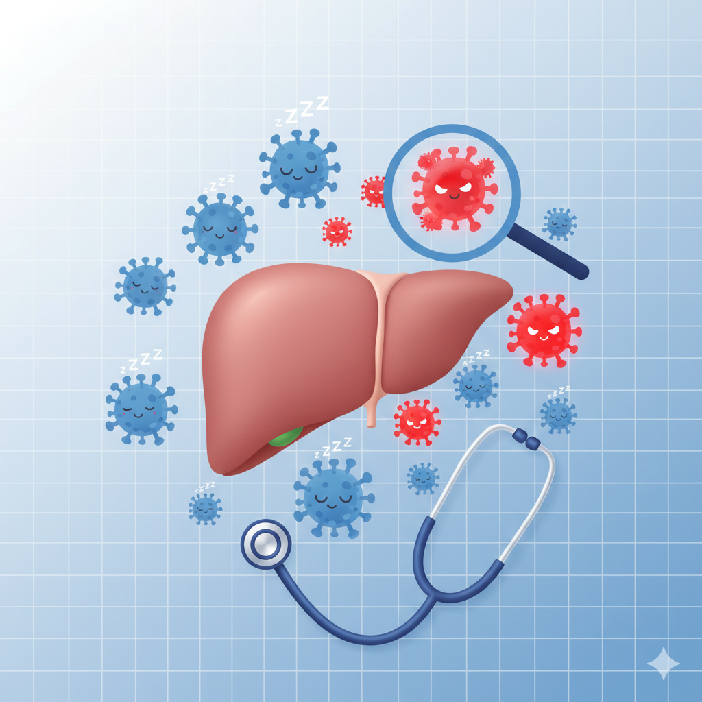 B형 간염 바이러스는 사라지지 않고 간 속에 숨어 있다가, 면역력이 떨어지거나 나이가 들면 언제든 재활성화될 수 있습니다.